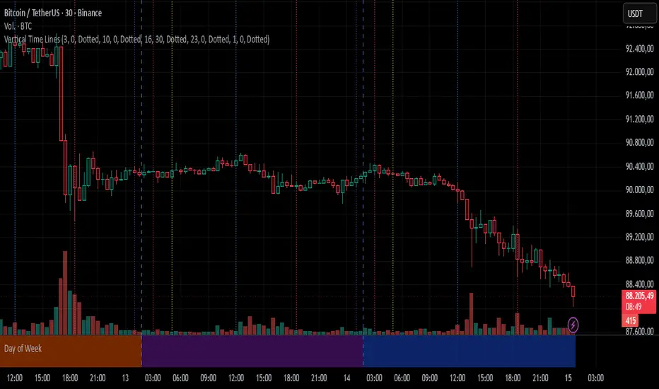 Vertical Time Lines is an indicator that draws vertical lines on the price chart at specific times of each trading day.⚙️ Main Features