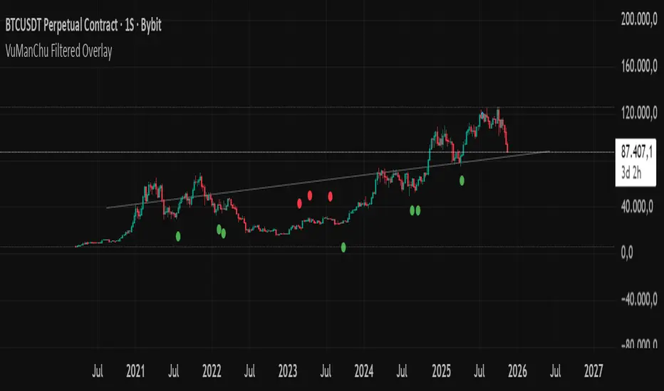 VuManChu Filtered Overlay is a price-overlay signal tool inspired by VuManChu Cipher B.