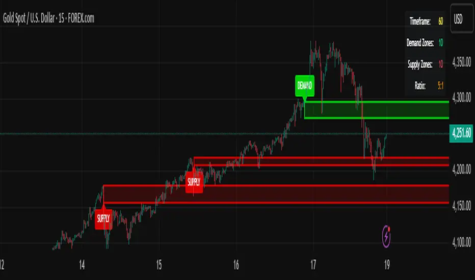 🧱 Auto-detects Supply (distribution) and Demand (accumulation) zones