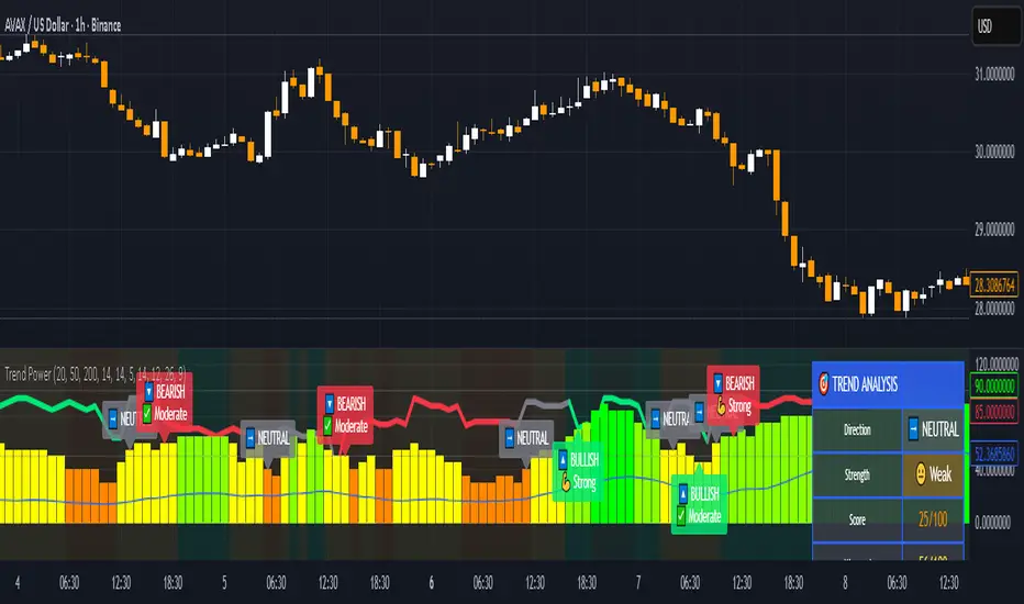 The ** Trend Strength Detector- TSD ** is an educational research tool that provides **quantitative measurement of trend quality** through two independent scoring systems (0-100 scale). It answers the analytical question: *"How strong and aligned is the current market trend environment?"*
