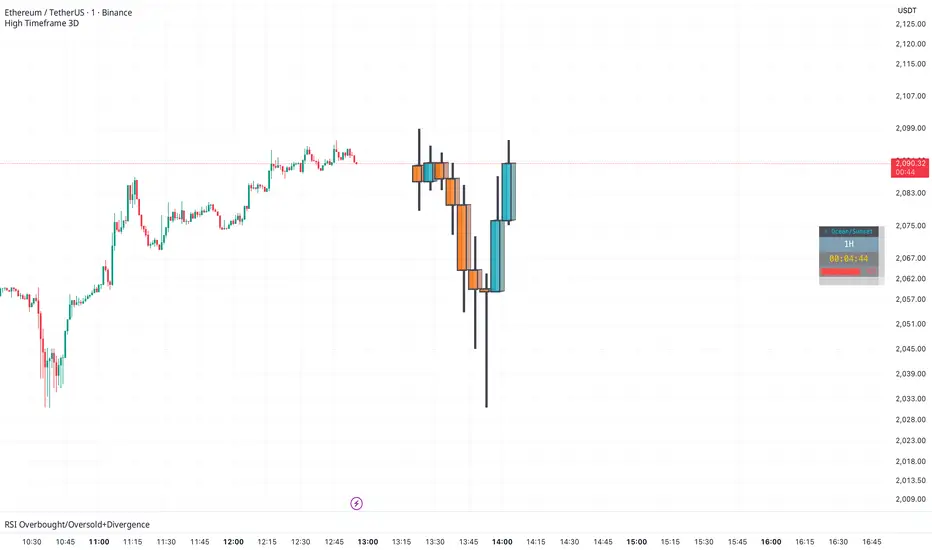 High Timeframe 3D is a visual overlay indicator that renders higher timeframe candles