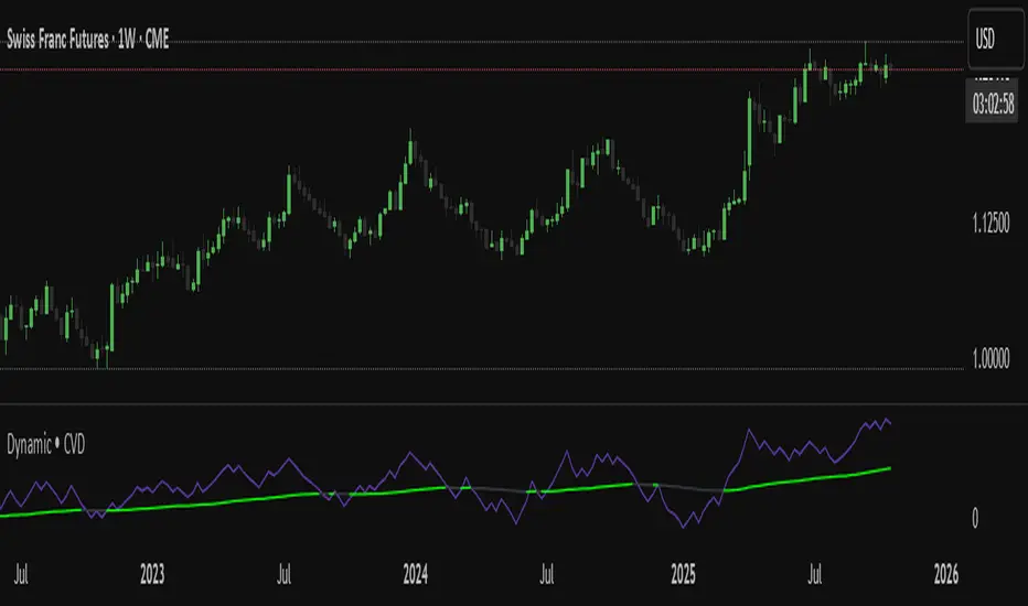 Dynamic - CVD is a smart, time-adaptive version of the classic Cumulative Volume Delta (CVD) indicator, designed to help traders visualize market buying and selling pressure across all timeframes with minimal manual tweaking.