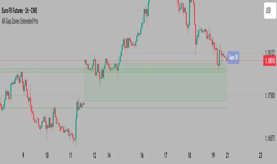 Gap Zones Pro identifies and tracks price gaps - crucial areas where institutional interest and market imbalance create high-probability reaction zones. These gaps represent areas of strong initial buying/selling pressure that often act as magnets when price returns.