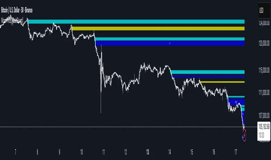 - Alerts: new bullish or bearish FVG, filled FVG, and extreme RSI FVGs.