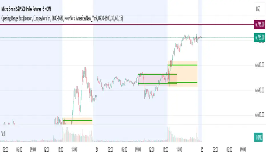 This indicator automatically draws Opening Range (OR) boxes and Session Boxes based on specific time zone settings, helping you visualize key trading periods across different global markets.