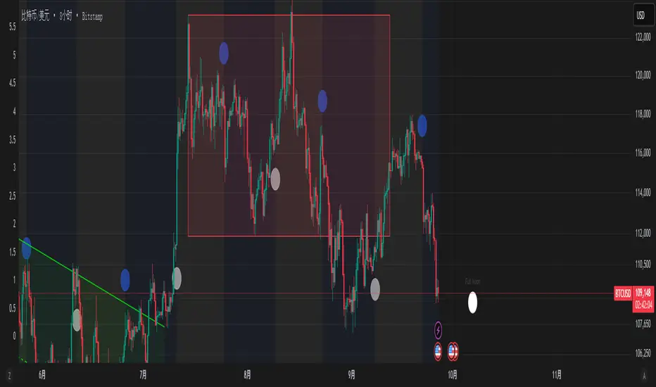 This indicator plots Moon Phases (New Moon and Full Moon) directly on your chart.