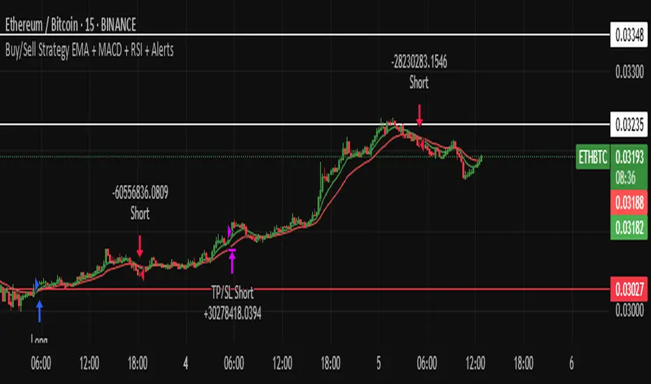 Zaktualizowano Manadi Buy/Sell Strategy EMA + MACD + RSI + Alerts