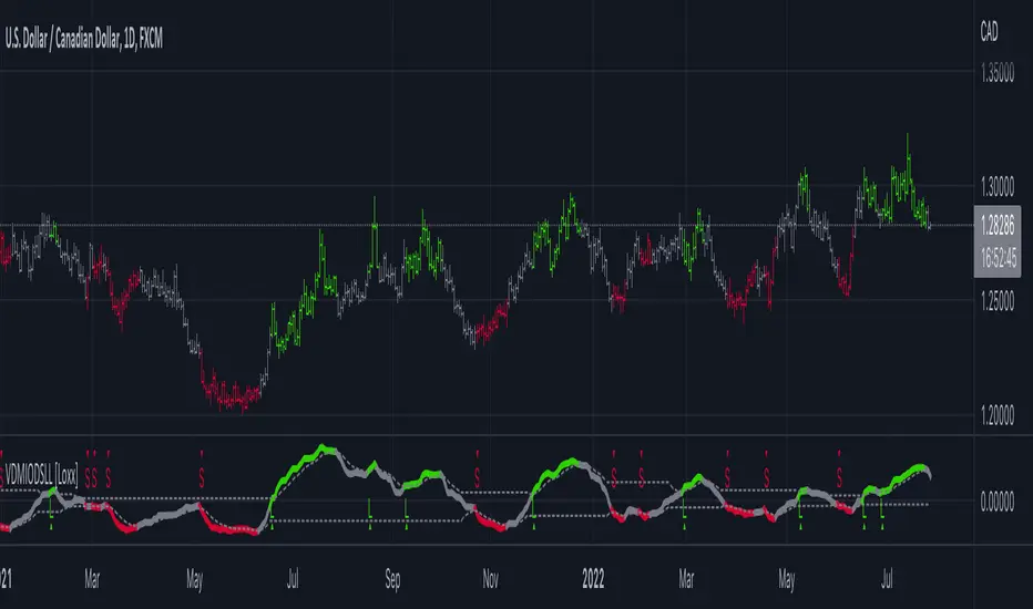 VIDYA DMI Oscillator w/ DSL Levels [Loxx] is a VIDYA smoothed Direction Movement Index with Discontinued Signals. These two add on features allow for more accurate signals by reducing noise.