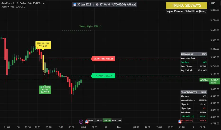 VetriFX Hub - XAUUSD is an advanced momentum-based trend following indicator specifically optimized for gold. It utilizes a multi-layered confirmation system to identify high-probability entries.