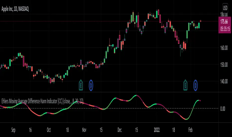 Zaktualizowano Ehlers Moving Average Difference Hann Indicator [CC]