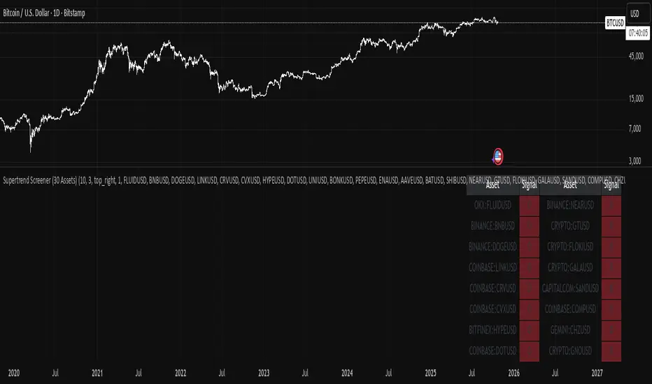 This Script collects the state of the supertrend in a table. It also has a alert function with a json output making it easy to use for webhook applications