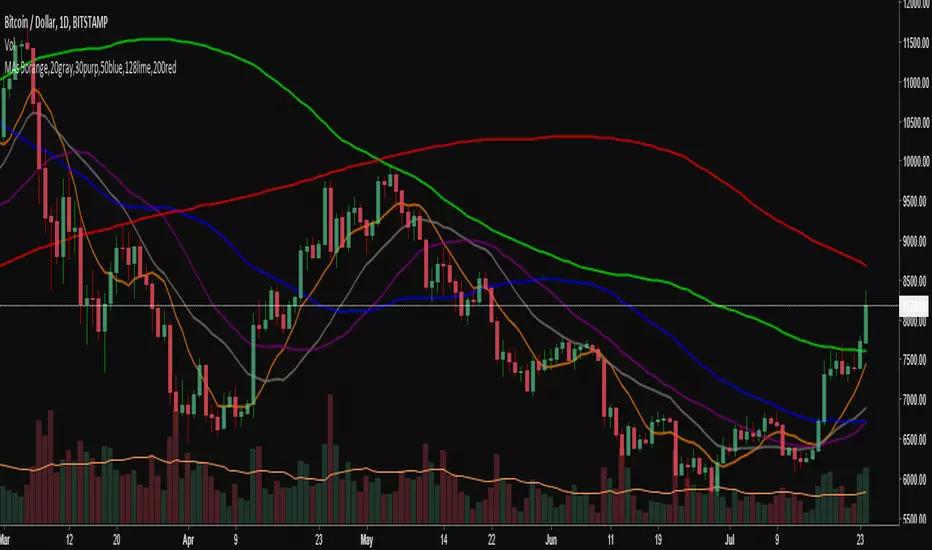 6 Simple Moving Averages 9,20,30,50,128,200 (bitcoin tested)