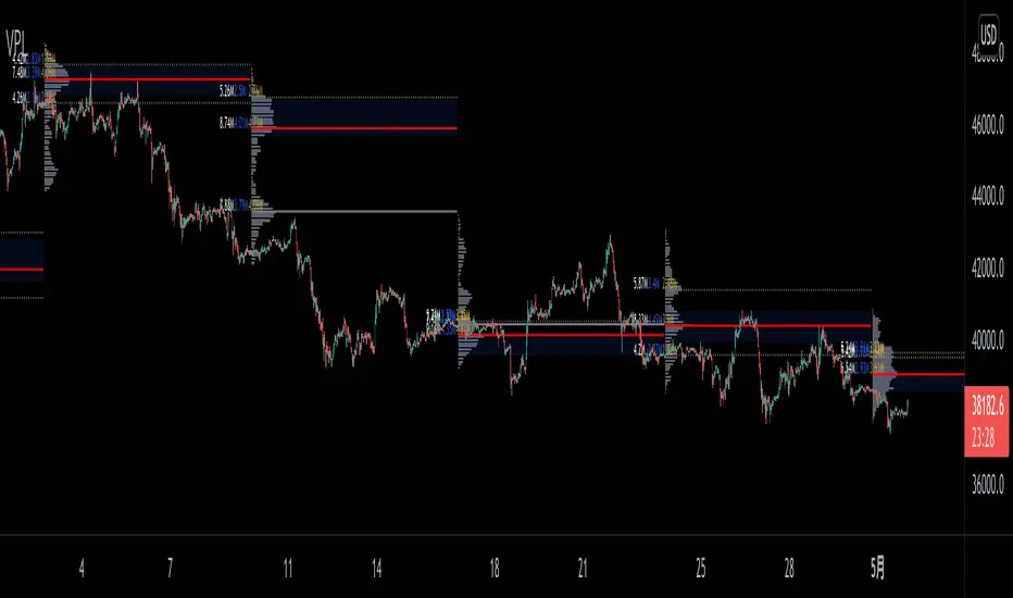 A colossal amount of function is deployed on the indicator: historical POC line, historical VA, historical VA high/low, volume profile histograms, volume profile value text (bid/ask/total), threshold function that limits the extension of the POC line based on user input etc.