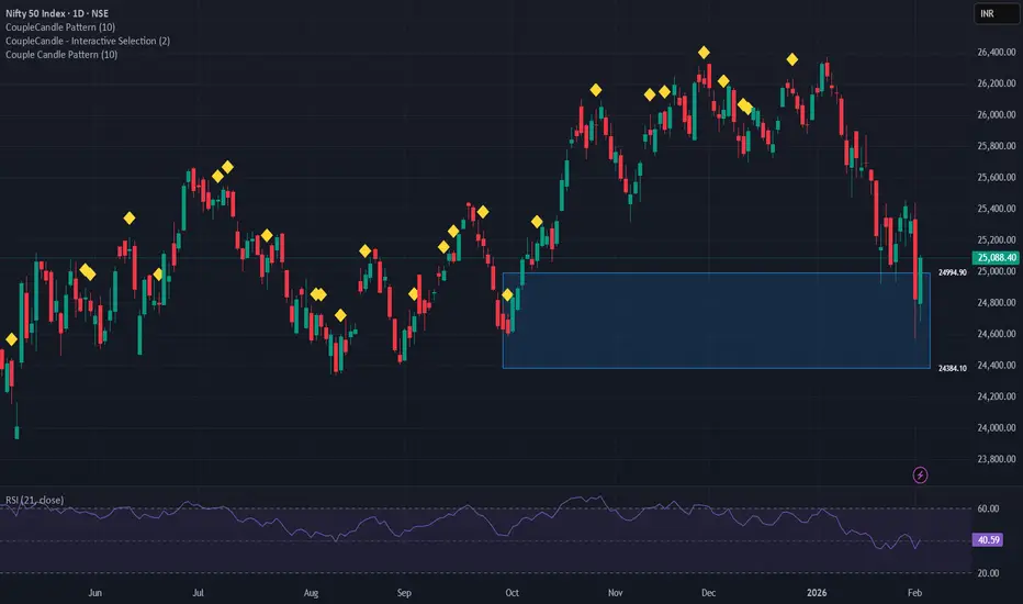 Couple Candle PatternWe are looking for a 2-candle pattern where body of candle-1 is within the range of candle-2 and similarly, body of candle-2 is within the range of candle-1