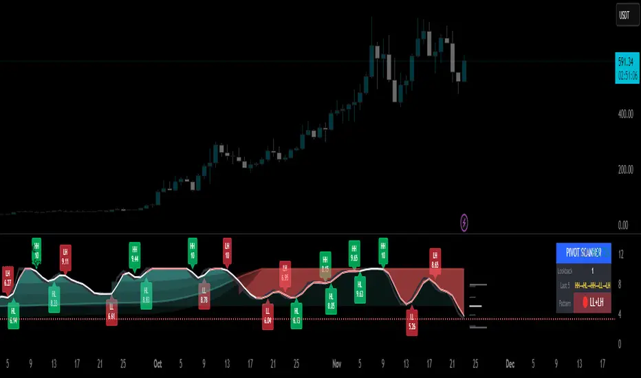 Includes visualization table displaying recent pivot sequence and active pattern status.