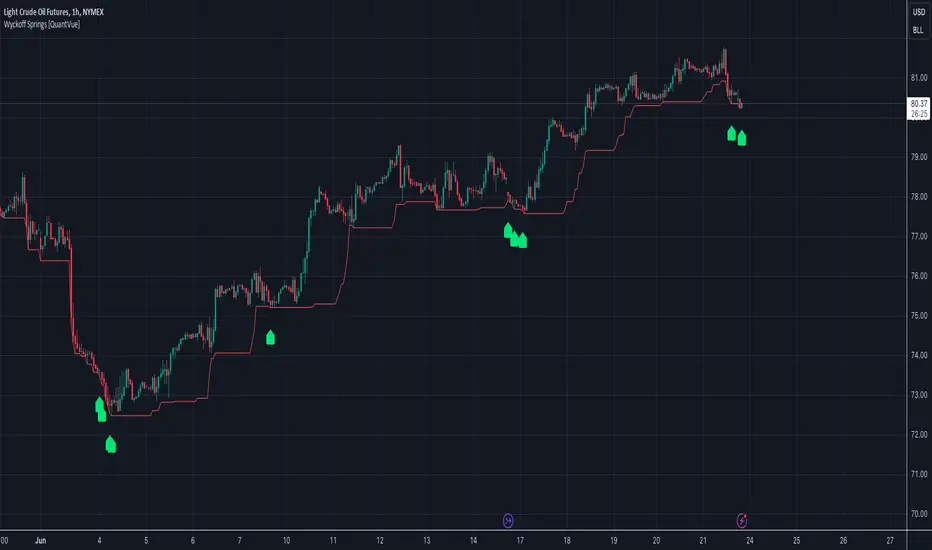 The Wyckoff Springs indicator is designed to identify potential bullish reversal patterns known as "springs" in the Wyckoff Method. A Wyckoff spring occurs when the price temporarily dips below a support level, then quickly rebounds, suggesting a false breakdown and a