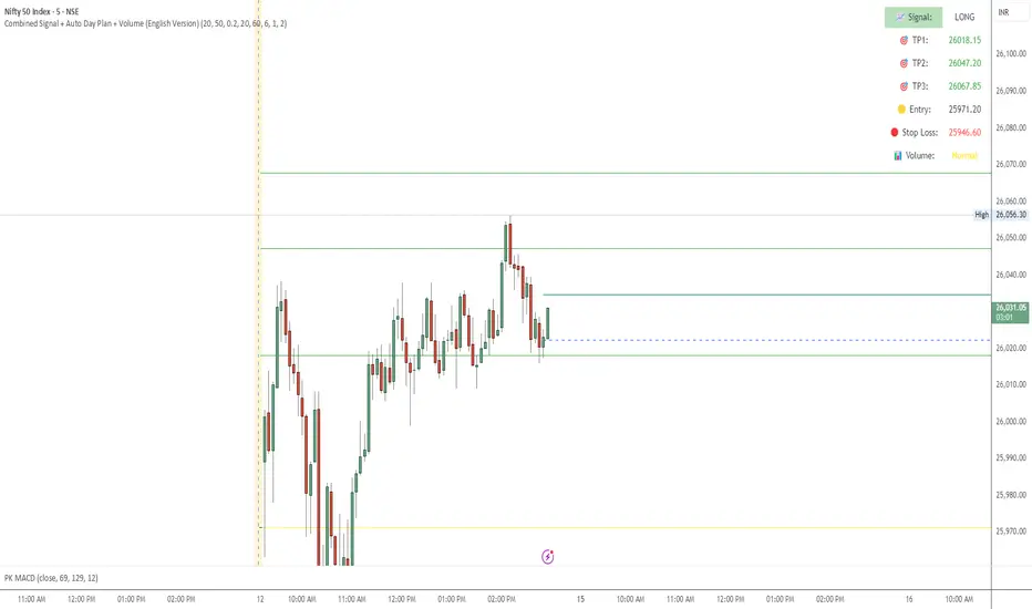 📘 TradingView Description — Combined Signal + Auto Day Plan + Volume