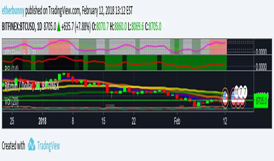 This plots the 8, 13, 21, 55 and 100 day exponential moving averages.