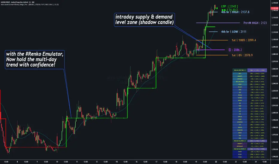 💠Note: "For key smart levels, it processes data from a customized time frame, which is not available for the *free Trading View subscription users, and requires a premium plan."By this indicator, you have an edge over the paid subscription plan users and can automatically plot the shadow candle levels and Non-repaintable RENKO emulator for the current chart on the free Trading View Plan at any time frame .