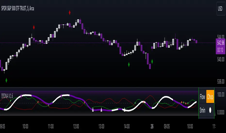 - Added a convergence bar, this will turn green when DNA is bullish and flow matches, it will turn red when DNA is bearish and flow is also bearish, and if flow and DNA are not matching, it will appear gray until both DNA and flow match.