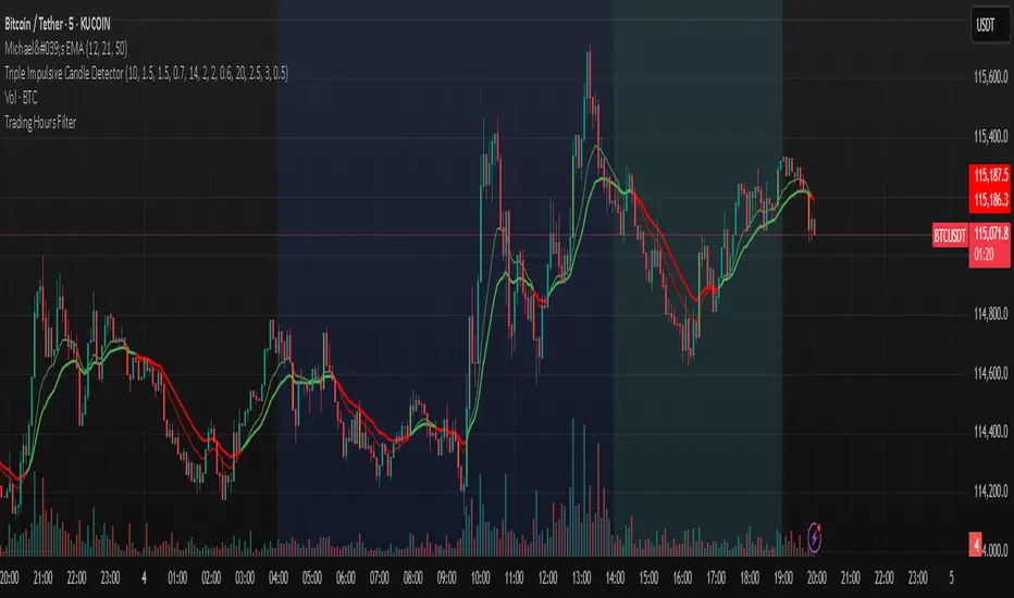 for those of us with certain trading hours and schedules and wait for certain setups, this is great for backtesting or live testing trade setups in your timeframe. Adjust times in pine editor as needed.