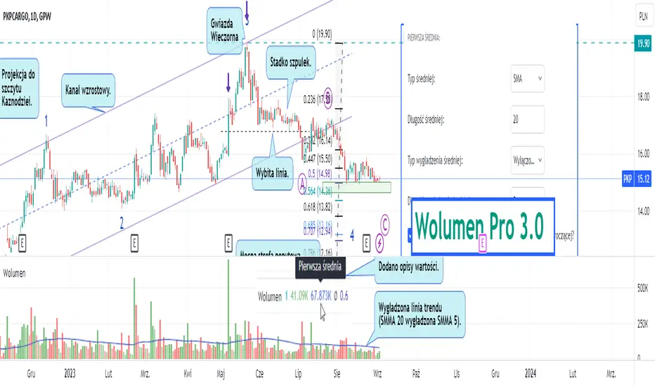 Prezentuje ulepszony skrypt wolumenu inspirowany metodologią Volume Spread Analysis. Zawiera on więcej informacji niż domyślny wolumen na Trading View i jest dużo bardziej konfigurowalny po polsku (dzięki temu, że jest prywatny, ponieważ publiczne skryptu mają obowiązek być po angielsku)! Pozwala on nie tylko dowolnie zmieniać kolory razem z poziomem przezroczystości, ale także wskazanie najmniejszych obrotów w danym okresie czasu.