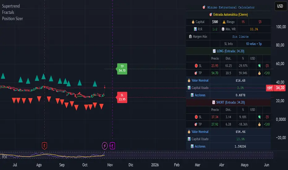 Professional risk management tool that automatically calculates the optimal position size for LONG and SHORT trades based on your account capital, desired risk percentage, and Stop Loss distance. Adapts seamlessly to multiple financial instruments including Forex, Stocks, Futures, Indices/CFDs, and Cryptocurrencies.