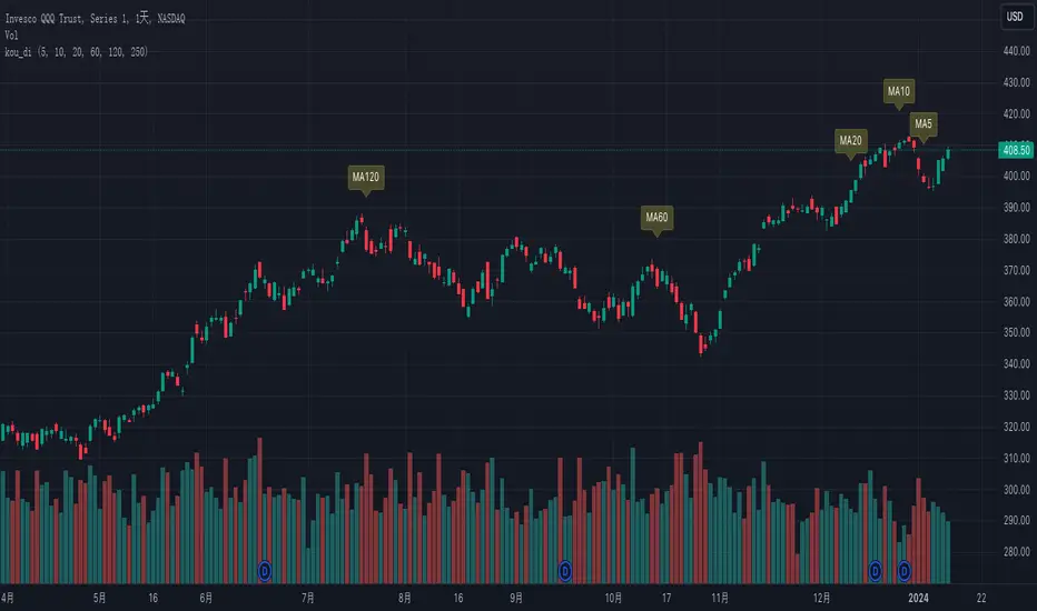 该指标用于显示SMA5, SMA10, SMA20, SMA60, SMA120, SMA250 的扣抵位来监测均线拐点的出现