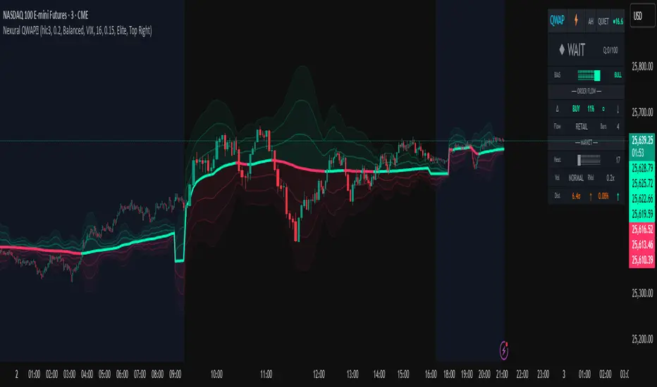 QWAP Elite is an advanced Volume Weighted Average Price indicator that incorporates true order flow analysis through intrabar data decomposition. Unlike traditional VWAP indicators that simply calculate price multiplied by volume divided by total volume, this indicator attempts to identify the directional intent behind that volume by analyzing whether buying or selling pressure dominated each bar at a granular level.