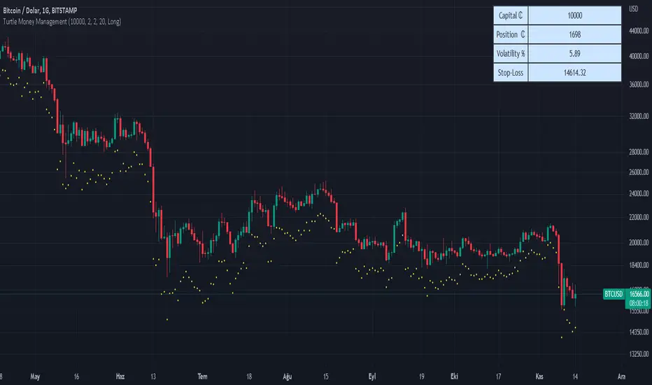 The indicator shows the suggested position size and stop-loss price. You need to activate position line to see how it behaved in the past. Information about the Turtle system shows that it works in a daily candle. Intraday candles can be misleading (for ATR) because of this indicator use daily ATR by default. I leave the choice to you.