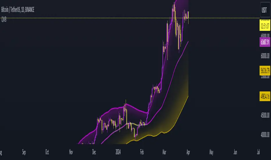 "Quadratic Weighted Bands" (QWB) is designed to identify and visualize market trends and volatility using quadratic weighted filtering techniques. It works by applying quadratic weighting to a selected data source over a specified length, enhancing the sensitivity and responsiveness of the indicator to recent market movements. A major advantage of this indicator is the ability to have a longer lookback period without having too much lag. This results in a smoother output that is still very responsive. Its about twice as fast as a normal average so adjust accordingly.