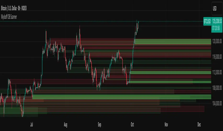 This script scans for order blocks. An order block in the bullish case is a red candle that leads to two upward candles with a FVG inbetween, and in the bearish case, it's a bullish candle that leads to two downward candles with a FVG inbetween.