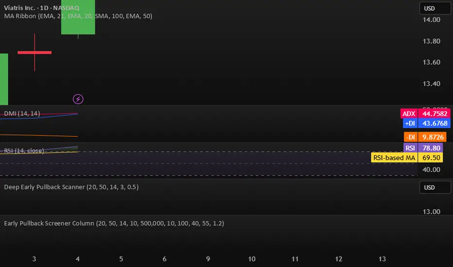 Continuation of Deep Pull Back indicator - this give a custom column screen of early potential continuation pullbacks