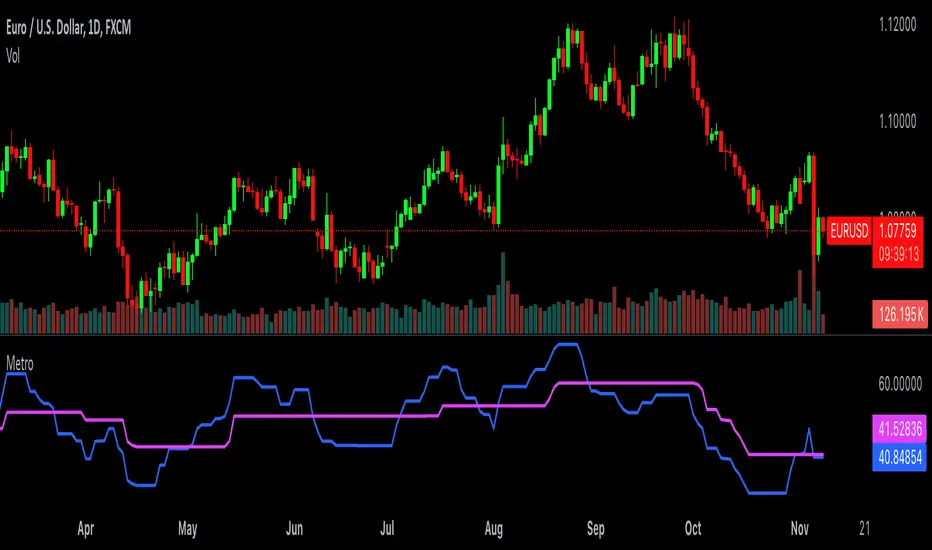 This is a derivative of J. Welles Wilder's RSI (Relative Strength Index) from 1978. This version uses a fast and slow offset of the RSI to create signals. The RSI itself has been removed from this version for visual simplicity, but its setting still has an impact on the fast and slow stepped lines.