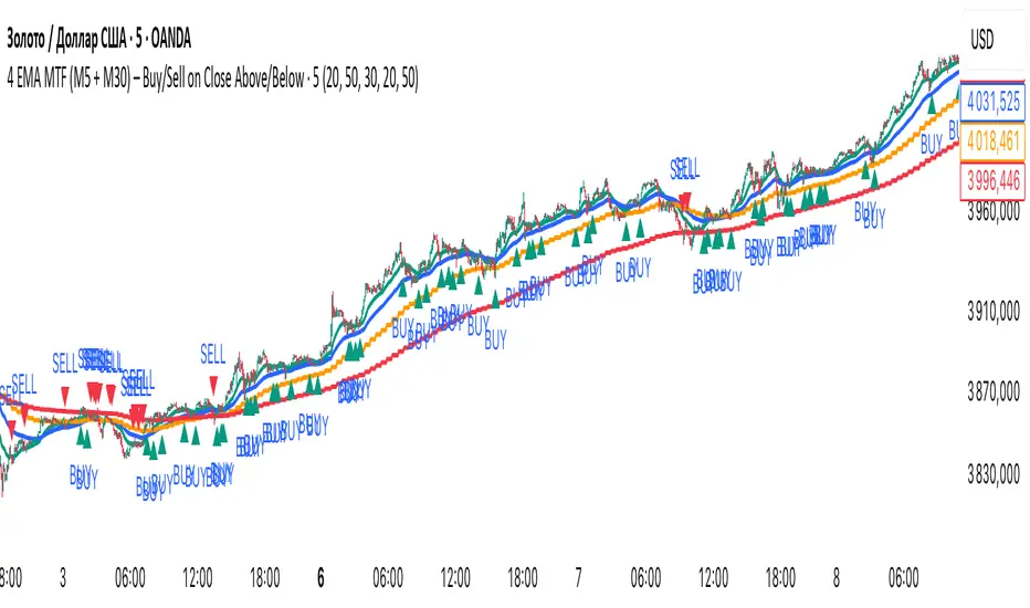 Andrei Marin4 EMA MTF (M5 + M30) – Buy/Sell on Close Above/Below