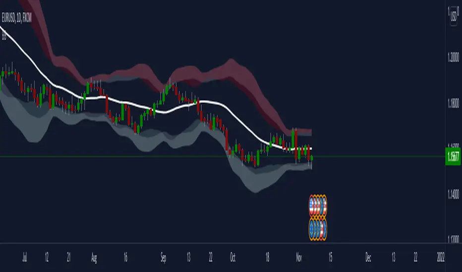1 — Bollinger Bands, The Bollinger band component is make out from two part, the standard component represented by a white cloud.
