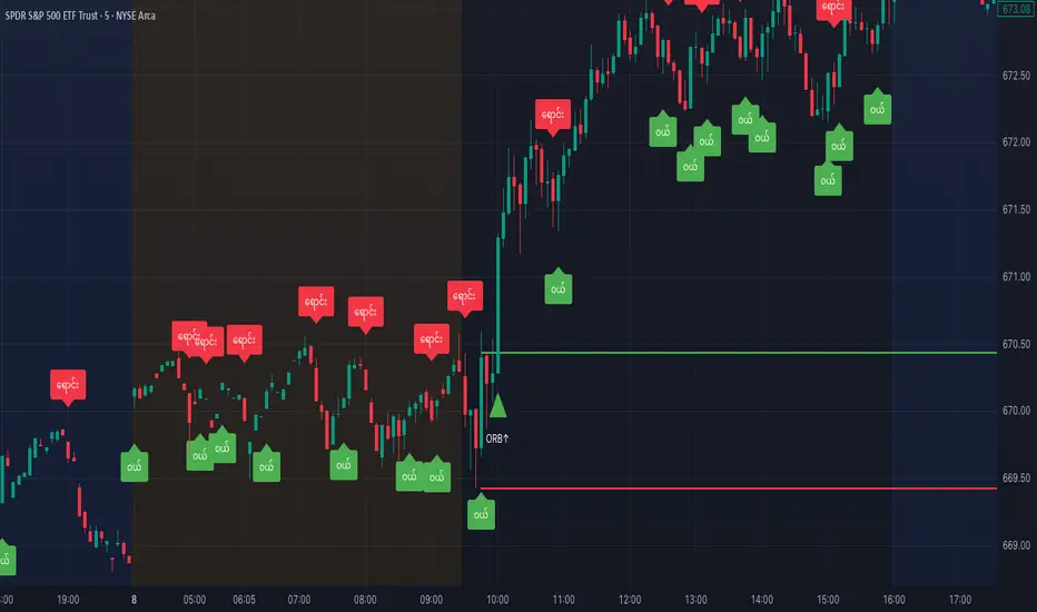 EMA 9, VWAP and ORB 15 minutes alert in Burmese. When the market across the EMA 9 will give alert to buy or sell. And when the market across the VWAP and ORB 15 will alert as well. Especially for Burmese community as it is in Burmese language.