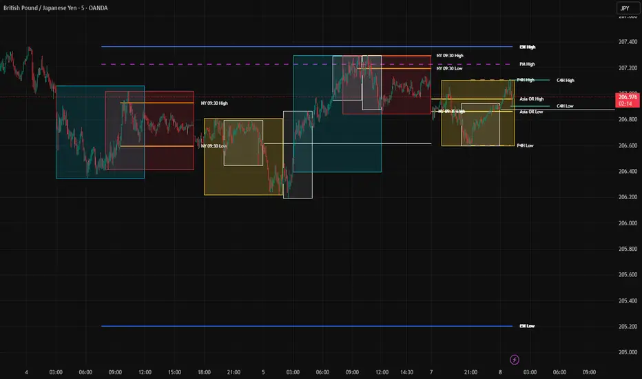 • show labels such as “Asia OR High”, “Lon OR Low”, “NY 09:30 High”, etc.