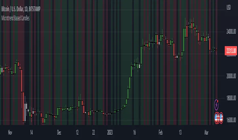 This indicator simply changes the background and color of candle based on the previous candle's close. If a candle closes high than the previous candle's high it will be indicated via green coloring. If a candle closes lower than the previous candle's low it will be indicated in red coloring. Additionally, grey colored candles appear when neither occur - often signifying consolidation.