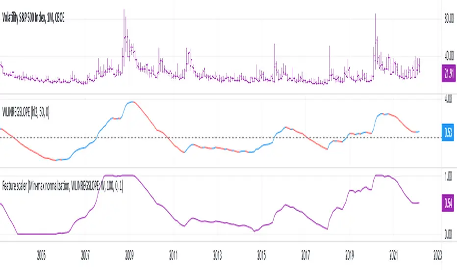 Can be (and should be) applied to other studies, or to the chart itself. In this example, I applied min-max scaling to weighted linear regression's slope values.
