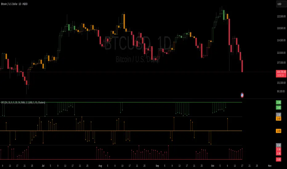Most indicators show binary or discrete conditions (e.g., bullish/bearish). SPC goes further, it quantifies how close the current value is to flipping into the next cluster.