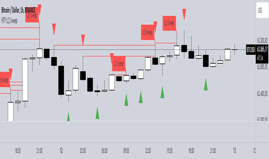 In the script you can select the timeframe in which the market has to be analysed. When the QL sweep occurs, an alert is triggered. This saves a lot of time because you can analyse different markets in different timeframes at the same time!