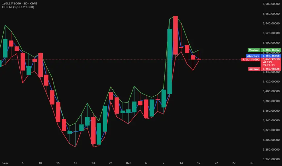 Indica as máximas, mínimas e aberturas do ativo 6L da CME (Dólar/Real Futuro).
