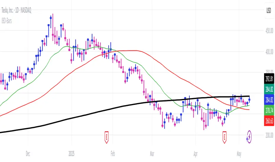 Transform your chart with institutional-grade IBD-style bars and customizable moving averages for both daily and weekly timeframes. This indicator helps you visualize price action the way professionals at Investors Business Daily do.