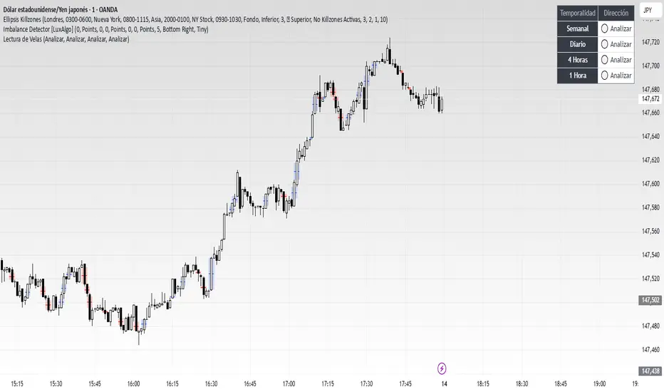 Script designed to display, on a panel as shown, the candlestick readings for Weekly, Daily, 4-hour, and 1-hour timeframes