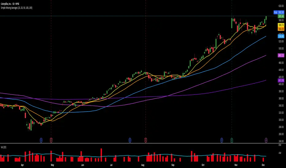 Simple Moving Averages (10, 20, 50, 100, 200)
