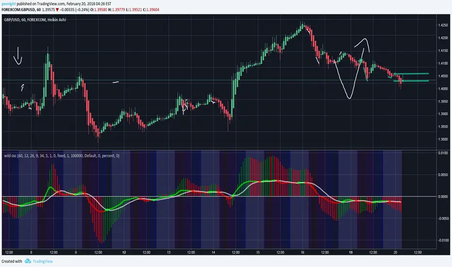 This oscillator is a combo if different goodies i find useful (Maybe you will too) This is a color changing MACD combined with the Awesome Oscillator and also shows the colored sessions as well (Like London session, Asain, NY and Aussie) All MACD and session settings can be changed in the Format tab. I also writtin a decent strategy script for this as well but wanna see if people find it useful before i post garbage lol. I also had colored bars based on if CCI was over 0 but i took it out as this is just a oscillator. Any feedback is always welcomed!