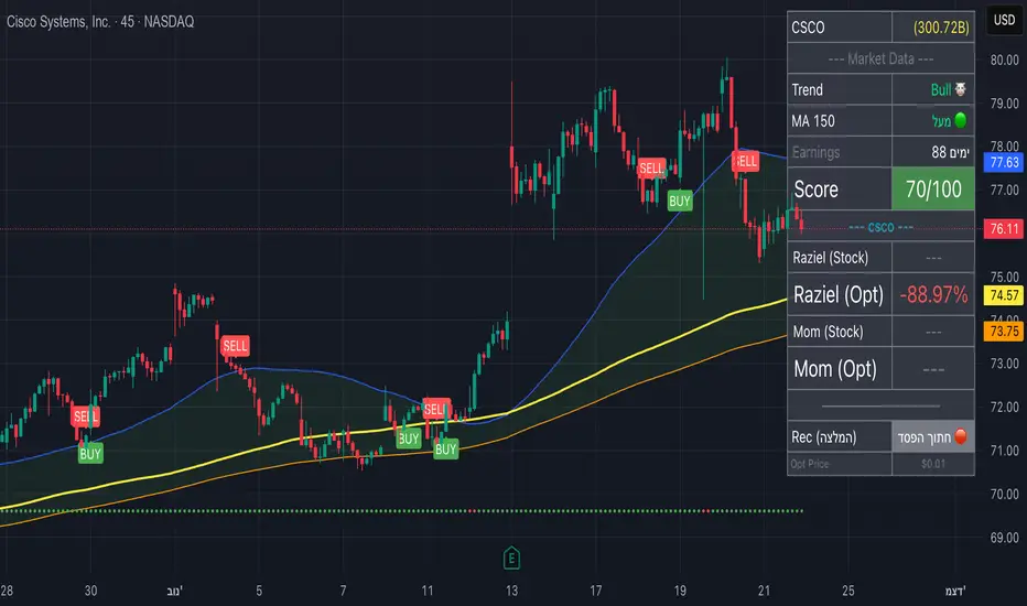 * **Institutional View (MA 150):** Visual indication of whether the stock is supported by institutional investors (Price above/below the 150-day Moving Average).