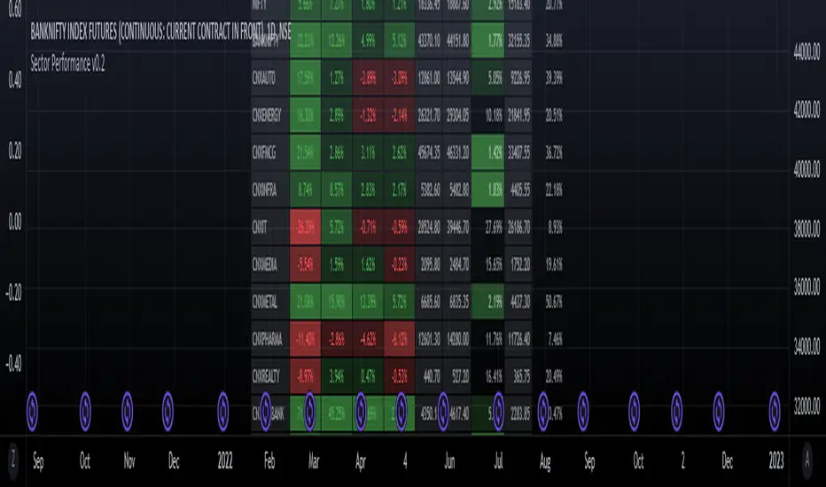 indicator shows the performance of the sector for those time periods along with 250d High/Low and distance from the High/Low