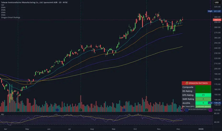 Dragon Smart Ratings is a comprehensive technical and fundamental analysis tool designed to identify market leaders instantly. Inspired by the legendary IBD/CANSLIM methodology, this script calculates five key ratings to help traders separate the "True Leaders" from the rest of the market.
